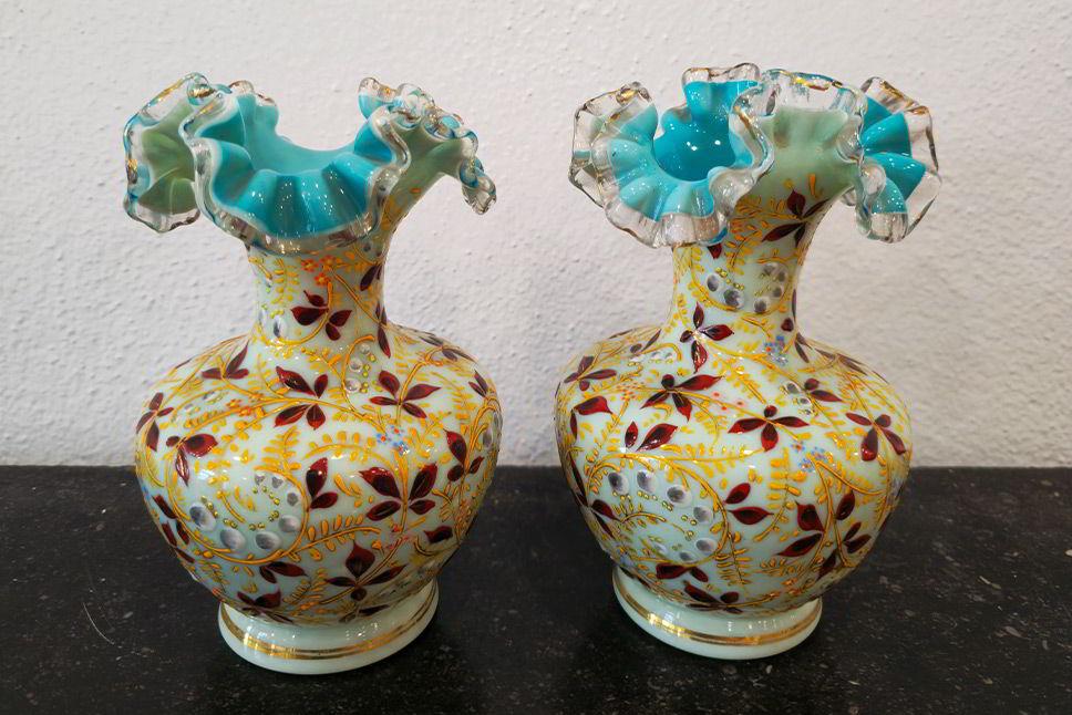 Obras maestras en vidrio: jarrones, cuencos y objetos coloreados en técnicas desde el vidrio superpuesto tradicional hasta diseños modernos y opulentos.
