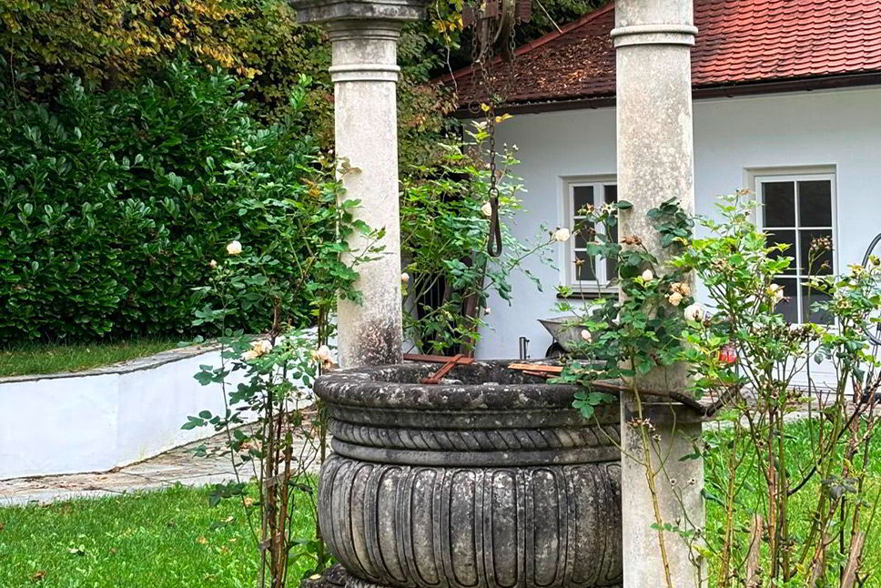 Elementos decorativos para jardín y exteriores: fuentes, estatuas, bancos, puertas y detalles arquitectónicos que aportan encanto y estructura.