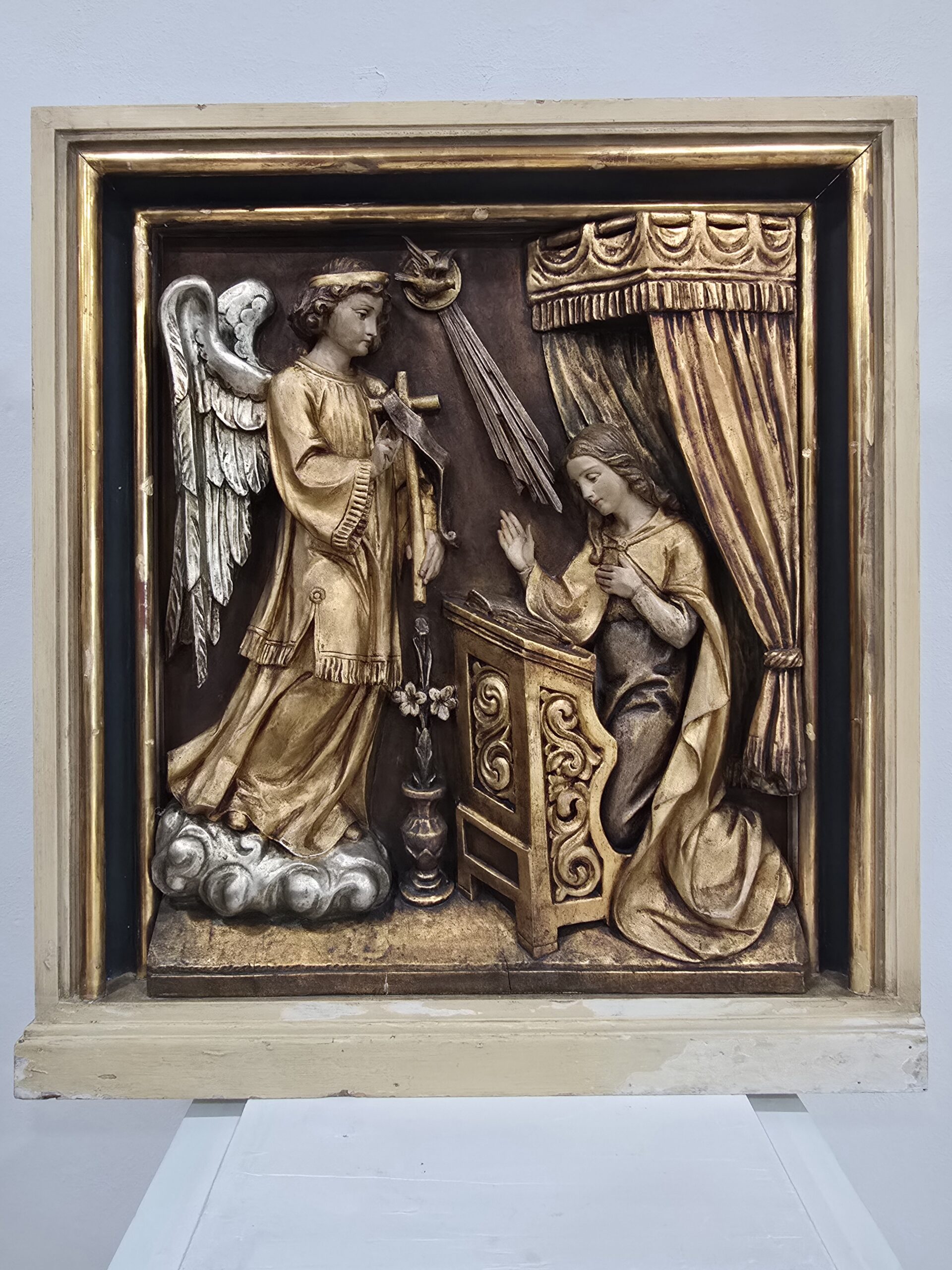 Relief Erzengel Gabriel tritt vor Jungfrau Maria