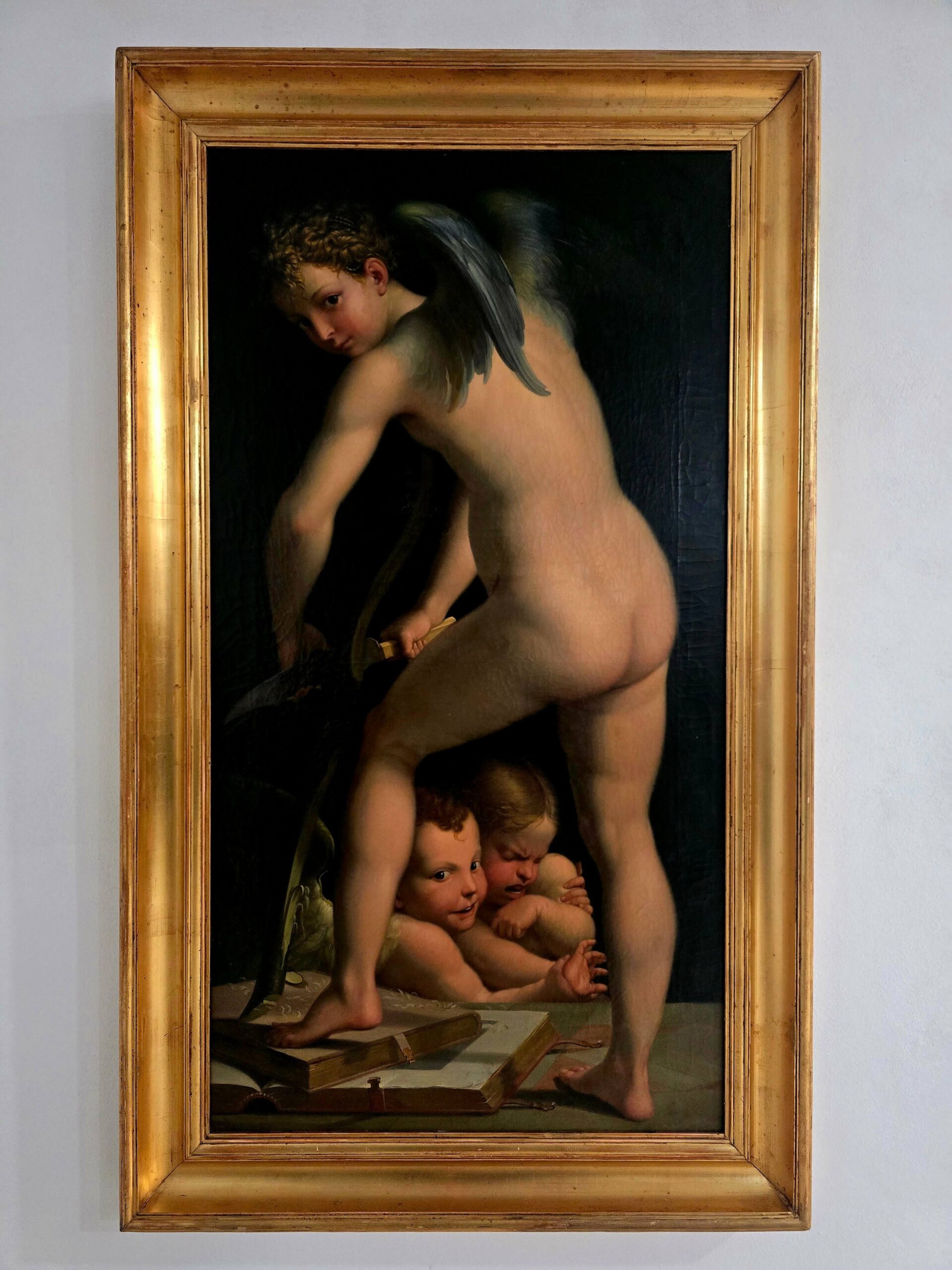 Oil painting “Cupid Carving His Bow”